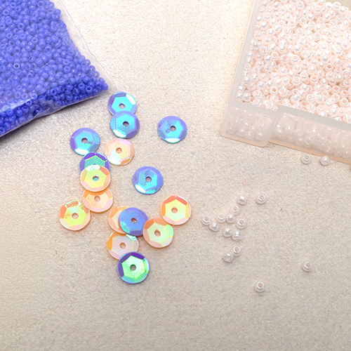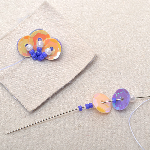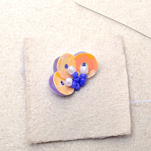 Deswegen habe ich mir überlegt, euch heute eine Perlenstickerei mit Pailletten zu zeigen. Mit Pailletten lassen sich nämlich wunderschöne Blüten sticken.