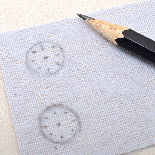 Ich habe diesmal Ultrasuede als Untergrund verwendet und darauf einen Kreis angezeichnet. Danach markiert ihr euch die Mitte und setzt ringsherum in gleichmäßigen Abständen acht Punkte.