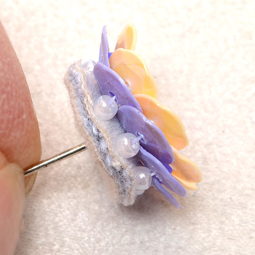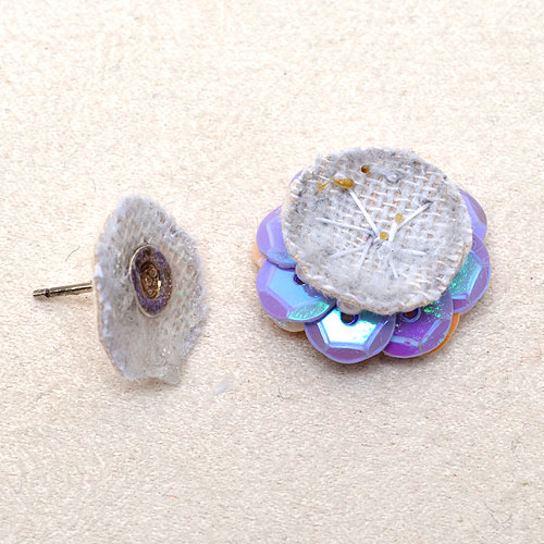Steckt den Ohrstecker durch ein kleines Loch in einem zweiten Ultrasuede-Kreis, Fixiert ihn gut mit Klebstoff.
